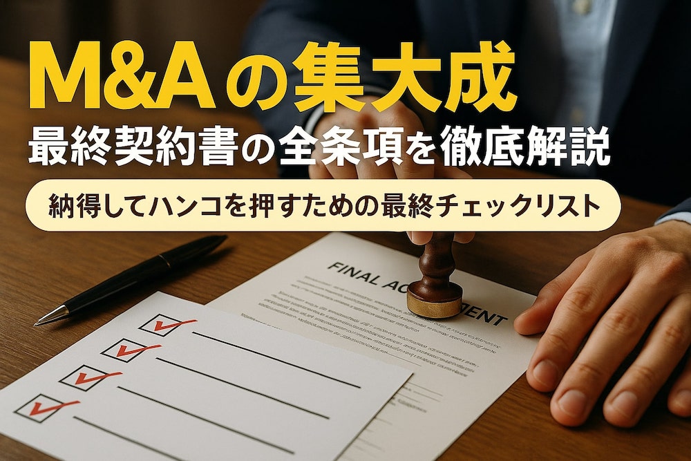 本記事では、売り手経営者の皆様が「納得感」を持ってその一歩を踏み出せるよう、最終契約書の重要条項とチェックリストを解説しました。